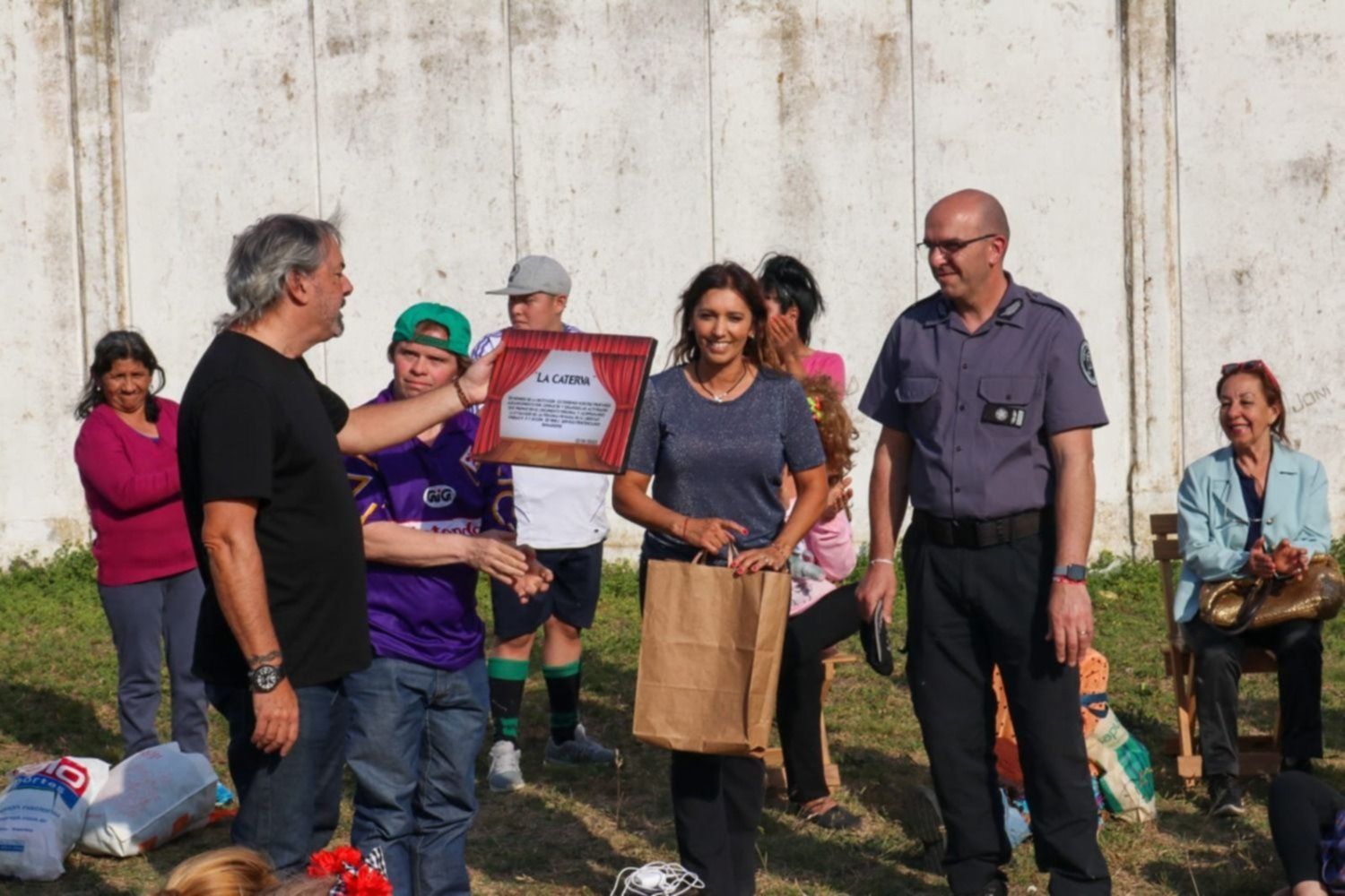 Dentro del programa “Más Trabajo, menos reincidencia” que impulsa el Ministerio de Justicia y Derechos Humanos de la provincia de Buenos Aires, mujeres privadas de libertad confeccionaron dos telones para La Caterva, y desde el grupo teatral ofrecieron como forma de agradecimiento un taller de teatro de dos encuentros y la presentación de una obra denominada “Pueblo de las calles”.
