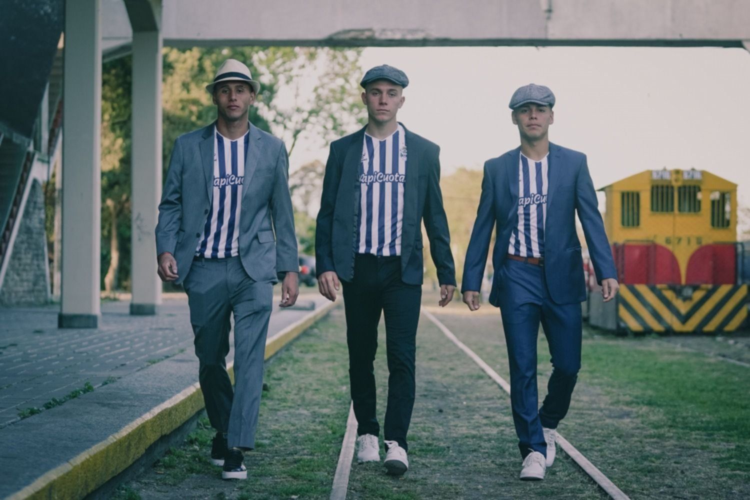 La camiseta, con un particular diseño de bastones verticales azules y blancos, fue presentada por tres de los juveniles estrellas del club: Benjamín Domínguez, Alexis Steimbach y Tomás Muro, quienes visitaron la vieja estación del ferrocarril provincial en Meridiano V y vestidos con sacos y boinas al mejor estilo de la serie Peaky Blinders de Netflix, se calzaron la nueva casaca de Gimnasia.