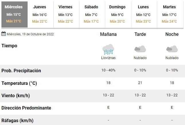 Las previsiones de la Dirección de Hidrometeorología de la Comuna no son muy diferentes. Los especialistas locales esperan un miércoles con cielo cubierto y jueves marcado por las "precipitaciones y tormentas aisladas", en el marco de días con mañanas frescas y tardes templadas.