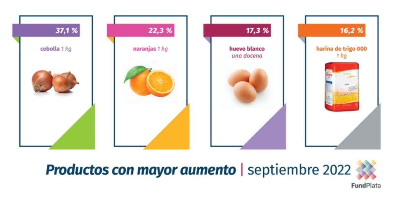 El relevamiento se llevó a cabo en la última semana de septiembre en 18 comercios de la capital bonaerense de trece barrios de la ciudad. El monitoreo incluyó a los 26 productos de carnicería, almacén y verdulería que integran la canasta alimentaria que monitorea mes a mes la fundación y arrojó como resultado que el rubro que mayor incremento tuvo fue el de productos de verdulería con un 8%, seguido por los de almacén con un 7,9%. En tanto, los cortes de carne experimentaron una suba de 2,3%.