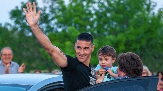 Cientos de habitantes de Villa Urquiza se hicieron el tiempo para acercarse hasta la entrada de la localidad en donde lo recibieron con bocinazos, aplausos y papelitos con una caravana de más de 50 vehículos, entre camionetas, autos y motos, como si se tratara de un héroe.