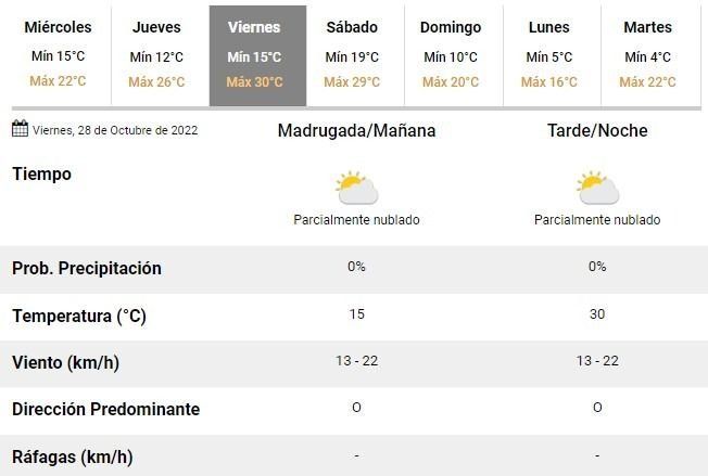 Todo será la antesala de un fin de semana con buenas condiciones de tiempo, temperaturas de entre 19 y 29°C el sábado y de 10 a 20°C el domingo, para cuando se espera el ingreso de un frente de aire frío del sur y un fuerte descenso de la temperatura, aunque ya sin lluvias en el horizonte.
