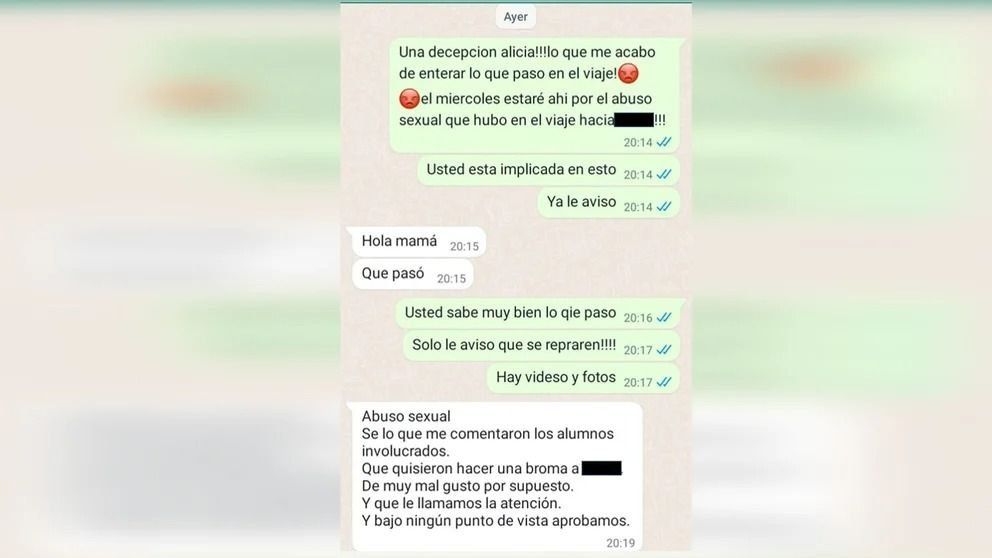 El menor le detalló las amenazas que sufre todos los días y que, durante el viaje, se agravaron hasta llegar a extremos desagradables. La víctima agregó un dato aún más preocupante. Los insultos y amenazas se los decían “frente de los profesores que no les dicen nada”. Según detalló en su relato en la comisaría, cuando la madre del menor vio el video y escuchó el relato de su hijo, le escribió a la responsable del curso para contarle lo sucedido. Lo que recibió del otro lado fue una respuesta sin mucha empatía.
