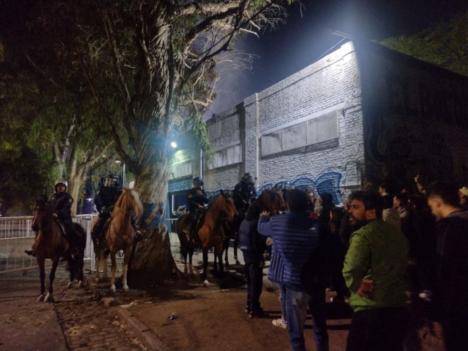 A raíz de esta situación, los uniformados reprimieron con balas de goma y gases lacrimógenos. Tal fue la magnitud que el humo terminó ingresando al campo de juego, por lo que el árbitro Hernán Mastrángelo debió suspender el partido.