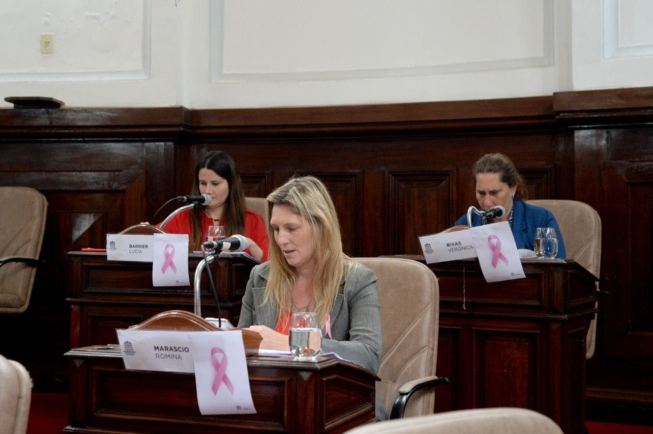 Además, en el marco del Mes de Concientización y Prevención del cáncer de mama, se declaró de interés municipal la Correcaminata promovida por la clínica Breast, el Hospital Italiano y la Asociación de Empresarias de las Diagonales (Aced), que hace hincapié a la importancia de generar buenos hábitos, actividad física y controles frecuentes de salud. Todos los concejales y concejalas pegaron en sus bancas el lazo rosa que identifica la lucha contra la enfermedad.