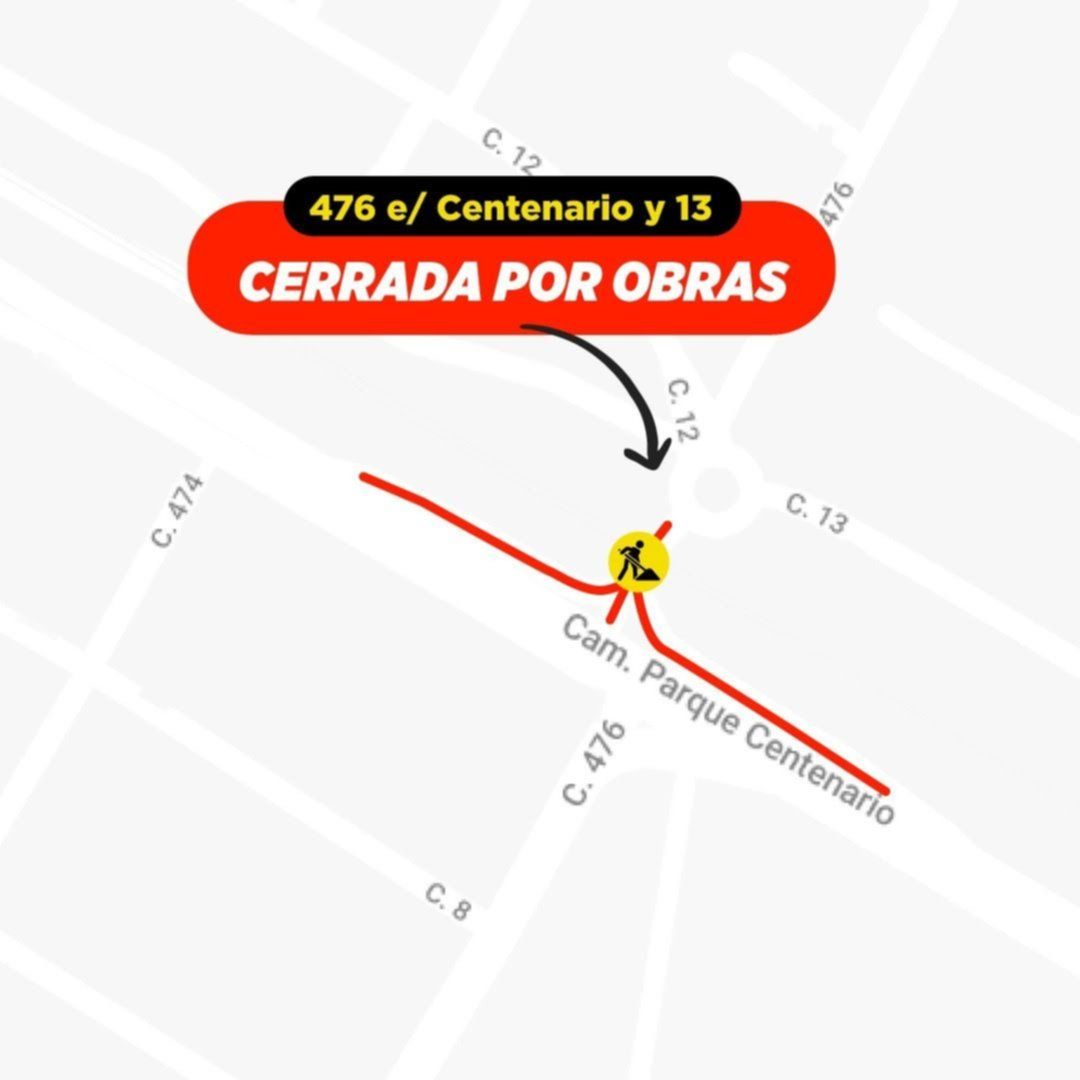 A partir del sábado 12 de noviembre a las 23 y durante un plazo aproximado de 40 días, la calle 476 e/ Camino Centenario y 13 permanecerá cerrada al tránsito vehicular con motivo del avance de las obras de renovación y mejoramiento de las vías del Ferrocarril General Roca, Ramal Constitución–La Plata. Informan vías alternativas de circulación.