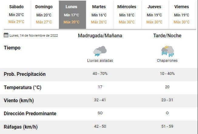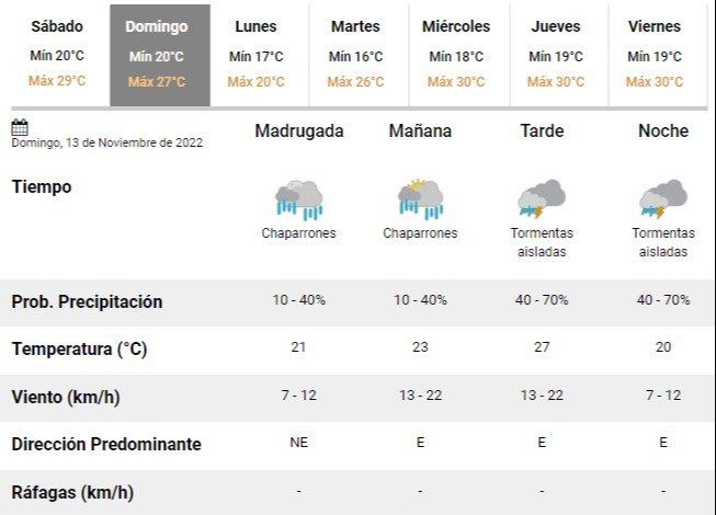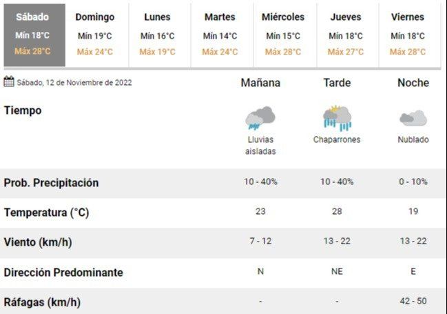Los expertos del SMN pronostican un sábado con nubosidad variable y un tiempo cambiante a lo largo la jornada, por lo que no descartan algunas lluvias aisladas. Lo peor, sin embargo, está por venir: para el domingo prevén chaparrones y lluvias desde las primeras horas de la mañana y la posibilidad de que pasado el mediodía se registren tormentas de variada intensidad.