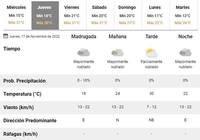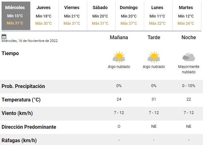 Para lo que resta de la semana, en tanto, se esperan condiciones similares: el cielo estará despejado y las buenas condiciones de tiempo continuarán durante los próximos días, a lo que se sumarán tardes muy calurosas con máximas entre 31 y 32°C en toda la ciudad.