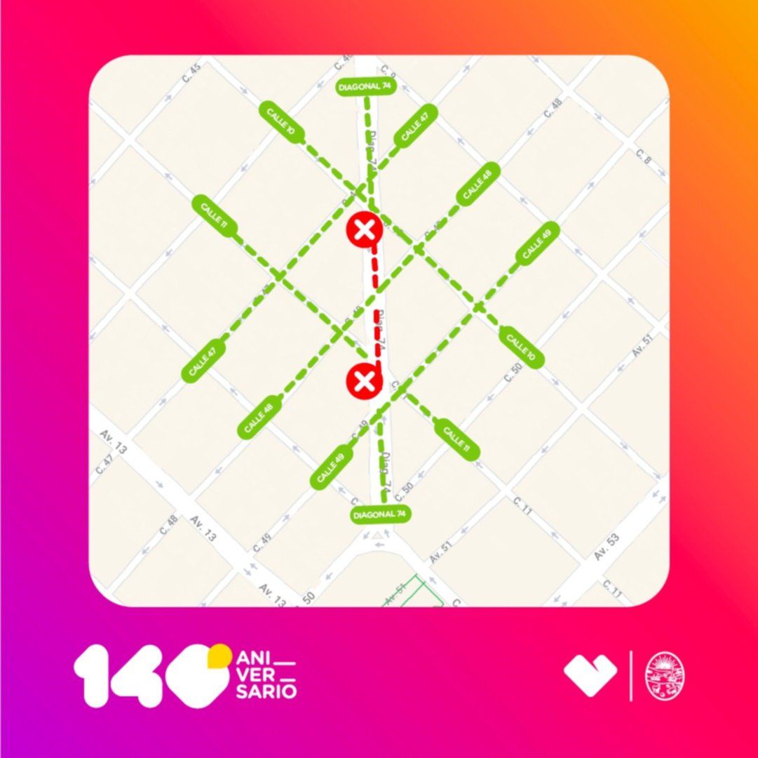 Los mismos serán específicamente en diagonal 74 y 47, y diagonal 74 y 49, donde se montarán los escenarios. Las calles transversales, en tanto, quedarán libres al paso.