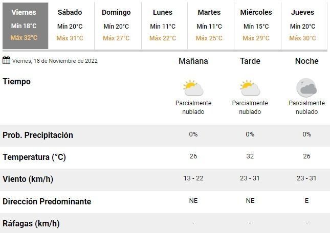 De acuerdo con el reporte de los meteorólogos argentinos, la jornada abrió con unos 18°C y, pasado el mediodía, podría alcanzar picos de hasta 32°C. En medo del intenso calor, sin embargo, se podrá disfrutar de algunas brisas pasajeras y es que los expertos también esperan que vientos leves a moderados, soplando a velocidades de entre 13 y 31 km/h.