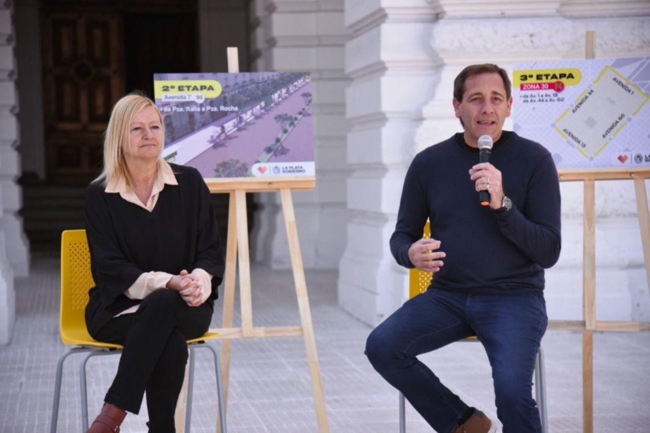 El plan lanzado este martes es la tercera etapa del proyecto que comenzó con la reparación de las veredas del Palacio Municipal, continuó con la obra integral de avenida 7 de 44 a 60 -que incluye también la colocación de luces LED y la renovación de los refugios en las paradas del transporte público-, y seguirá en una próxima instancia con la transformación de todos los centros comerciales de la ciudad.