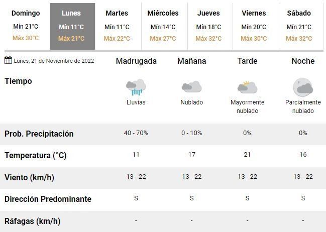 De acuerdo con las previsiones del SMN, las lluvias empezarían a registrarse durante las primeras horas del día y, de modo intermitente, continuarán durante toda la jornada, acompañadas de una temperatura oscilando entre 21 y 30°C.