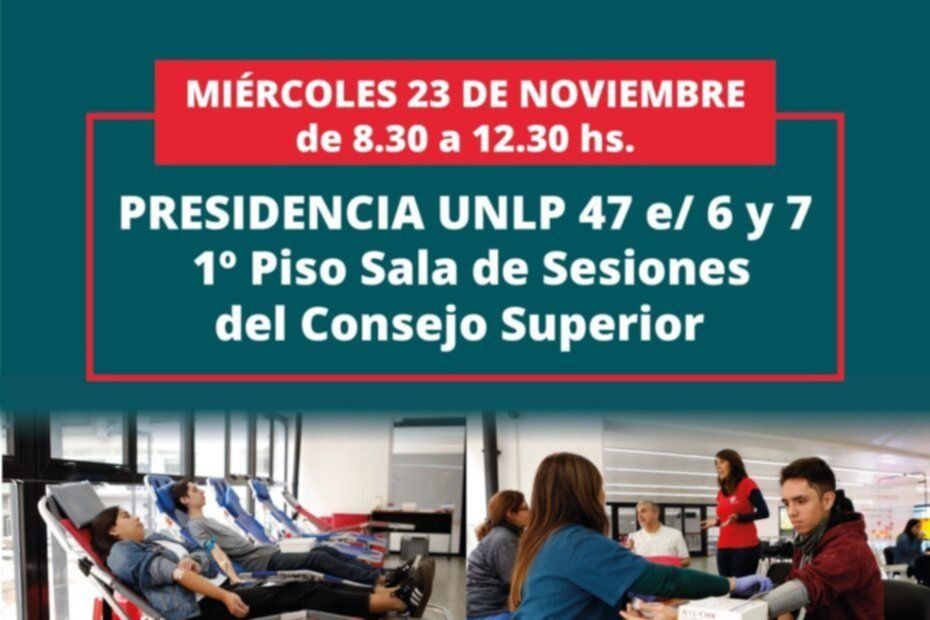 Este miércoles se realizará una nueva colecta de sangre en el Rectorado de la UNLP, una iniciativa solidaria organizada por la casa de estudios platense, el Centro Regional de Hemoterapia de La Plata y el Instituto de Hemoterapia de la provincia de Buenos Aires.