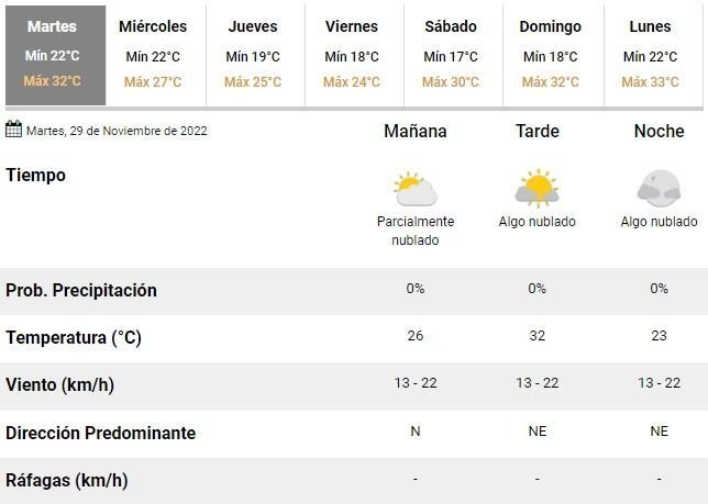El intenso calor de los últimos días volverá a hacerse sentir en la ciudad, esta vez con un martes de entre 22 y 32°C, acompañado de una humedad que rondará el 80% y vientos leves a moderados soplando desde el norte y noreste. Los especialistas no prevén, en ese marco, que puedan desatarse lluvias o tormentas en las próximas horas, pero anticipan una creciente inestabilidad a medida que avance la semana.