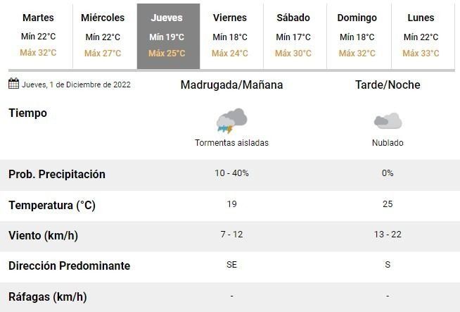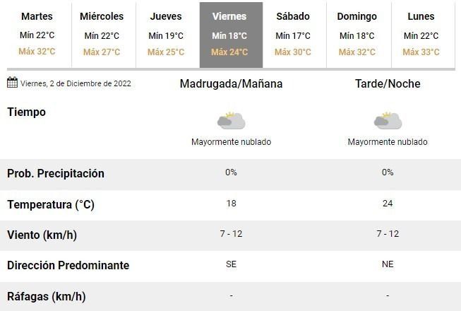 Con todo, sin embargo, el fin de semana volvería el calor. Los meteorólogos anticipan dos jornadas de descanso con buen tiempo, un sábado algo nublado y de entre 17 y 30°C y un domingo a pleno sol, con máximas llegando a los 32°C en toda la ciudad.