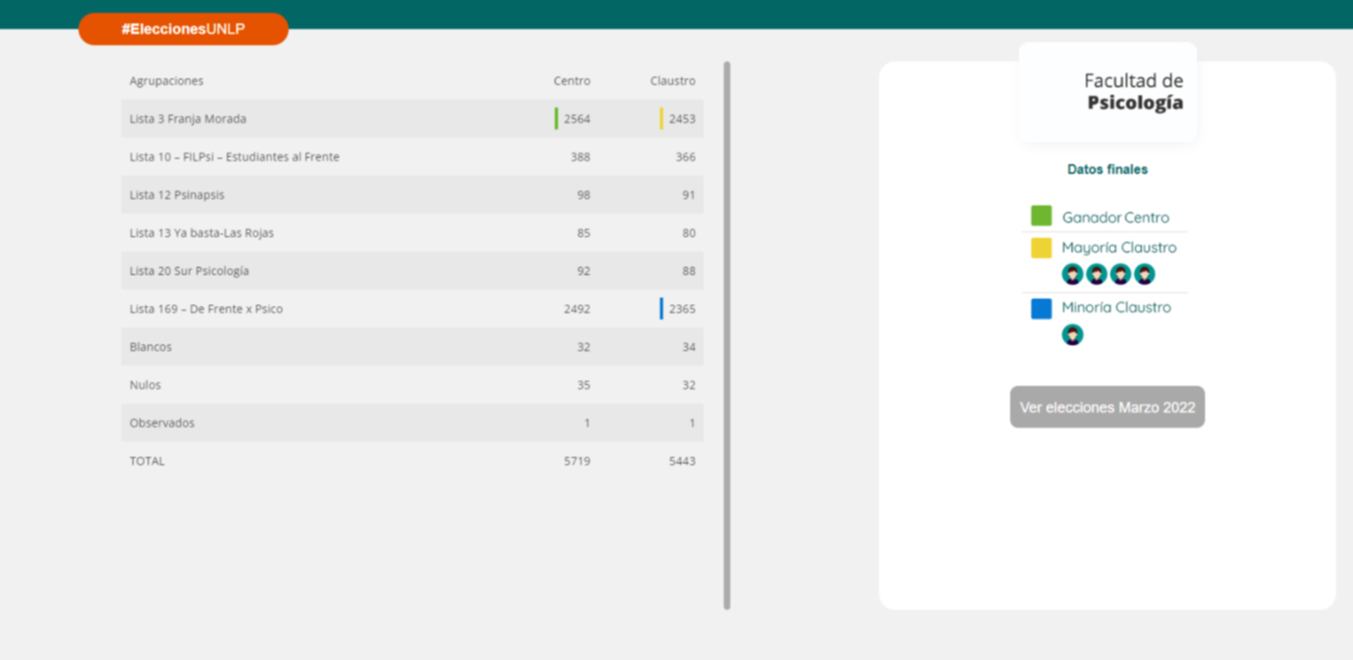 La disputa fue con el Frente x Psico integrado por agrupaciones que conducen la FULP, como el  Miles, Patria Grande, la CEPA, Ahora o Nunca y Santiago Pampillón.