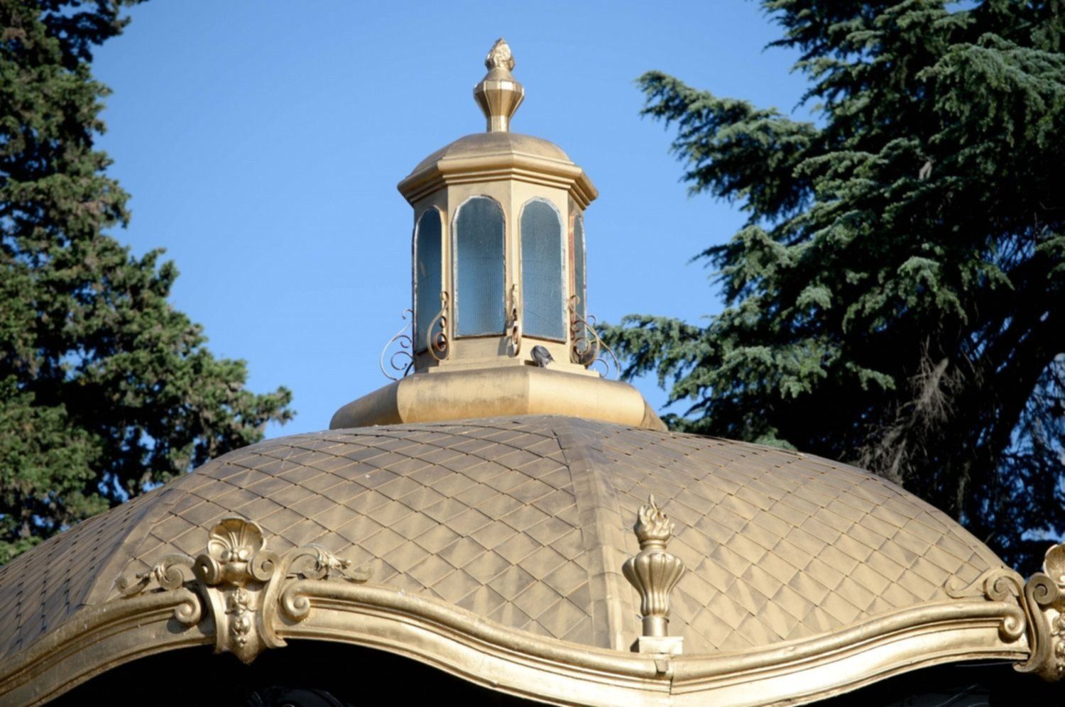 La glorieta fue inaugurada en 1912 y se encuentra rodeada de edificios emblemáticos como el Palacio Legislativo de la Provincia de Buenos Aires, la Casa de Gobierno y el Centro Cultural Pasaje Dardo Rocha. Se trata de una pieza de estilo Art Noveau adquirida en Francia a través de la famosa fundadora de Val d’Osne y creada con la finalidad de que los ciudadanos pudieran disfrutar de shows en la plaza, un gran punto de encuentro social.