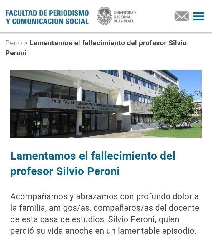 Todavía continúa la conmoción por el crimen de Silvio Peroni (53), el periodista y docente de la Facultad de Periodismo y Comunicación Social de la UNLP que fue asesinado por un delincuente que ingresó a su casa en 26 entre 39 y 40. En medio del dolor, sus compañeras y compañeros de la cátedra de Taller de Análisis de la Información emitieron unas sentidas palabras de despedida.