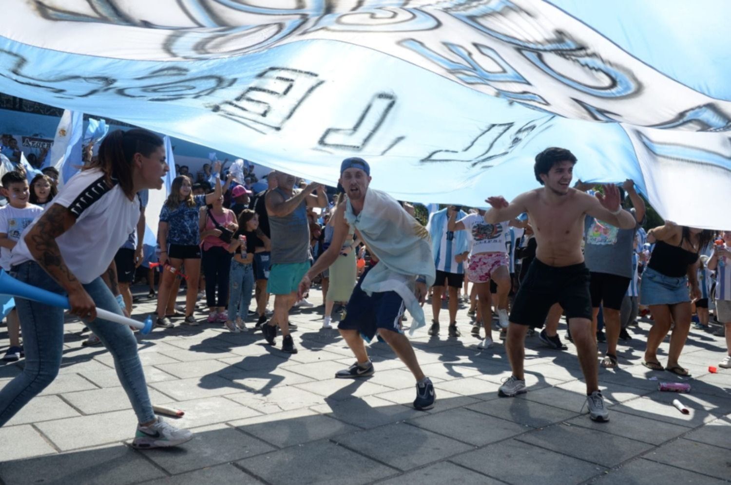 Asimismo, se desplegó un telón celeste y blanco, y se colaboró con unos 2.000 banderines que sujetaron los miles de platenses que tuvieron la chance de estar presentes frente a nuestra redacción.