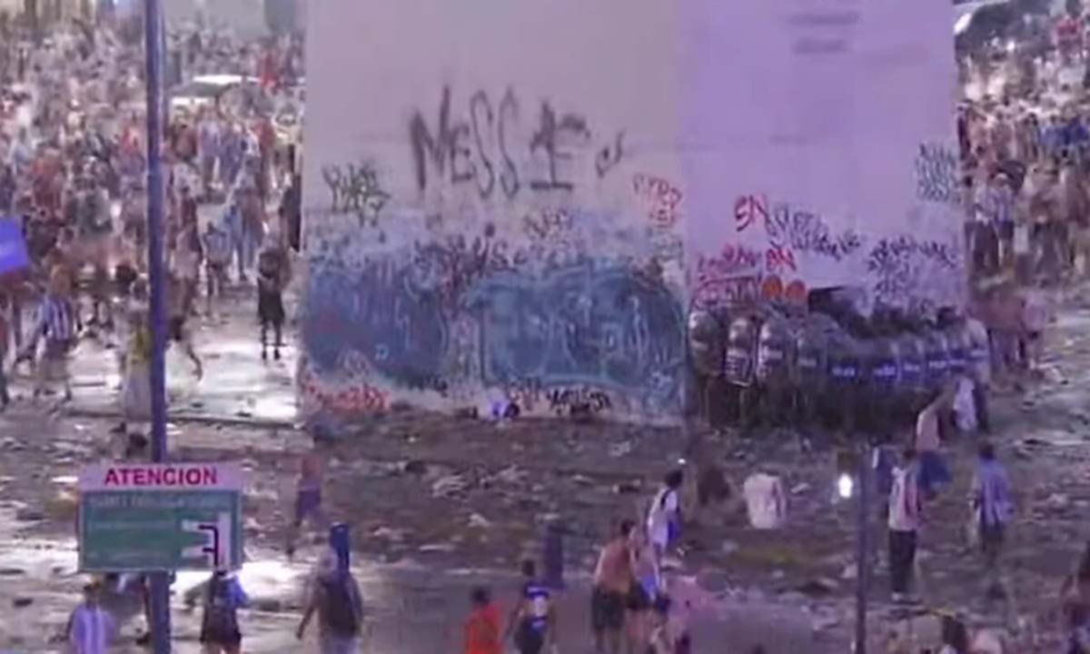 Vale destacar que todo ocurrió en el cierre de una memorable jornada en la que millones de personas se concentraron sobre toda la 9 de Julio para aguardar la llegada del colectivo con los jugadores campeones del Mundo, que originalmente iba a pasar por ese lugar para saludar a los seguidores, pero que finalmente debió cambiar su recorrido debido a la multitud que había allí.