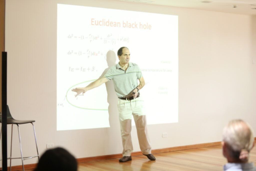 Según el científico, "los agujeros negros son objetos donde el flujo del tiempo se deforma en gran manera. Se deforma tanto que si uno se acerca demasiado a un agujero negro este flujo del tiempo nos arrastra en forma inexorable al interior. Si pensamos al agujero negro hecho de ciertos 'átomos de espacio tiempo', entonces queremos entender que significa este flujo del tiempo. Y si la información que es arrastrada hacia el interior logra salir o no".