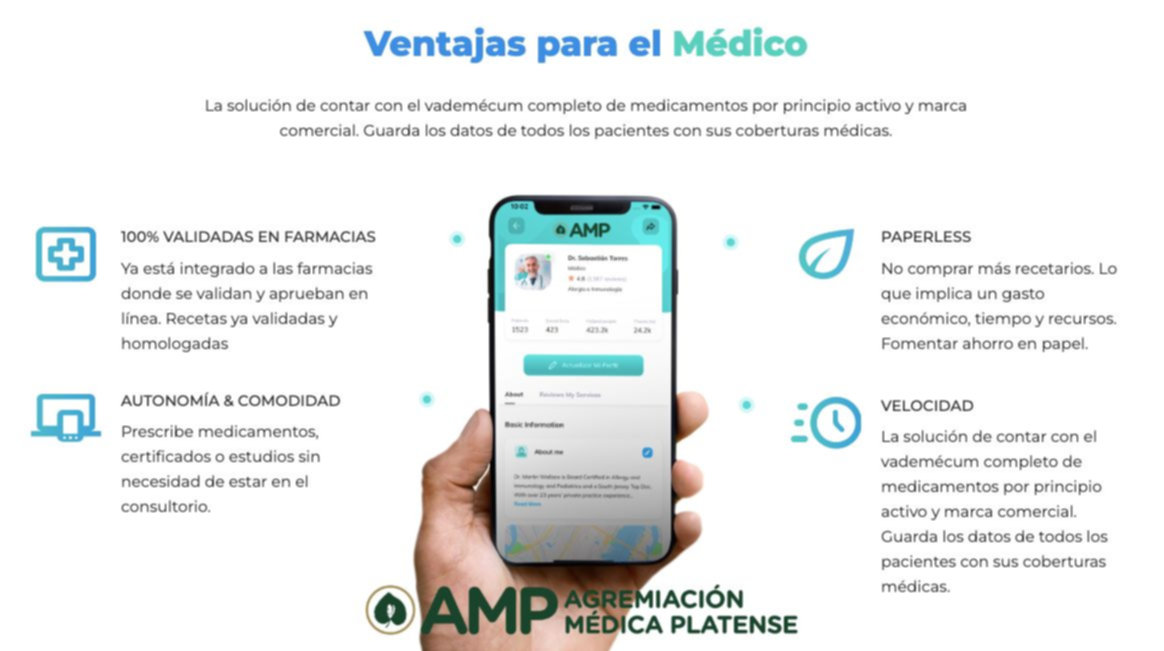La Agremiación Médica Platense (AMP) implementará a partir de enero un nuevo sistema de prescripción electrónica de fármacos para facilitar el trabajo de médicos y el acceso al medicamento de los pacientes de obras sociales varias y prepagas. Será a través de la aplicación RCTA, que ya está disponible para descargar en el celular desde App Store o Google Play Store.