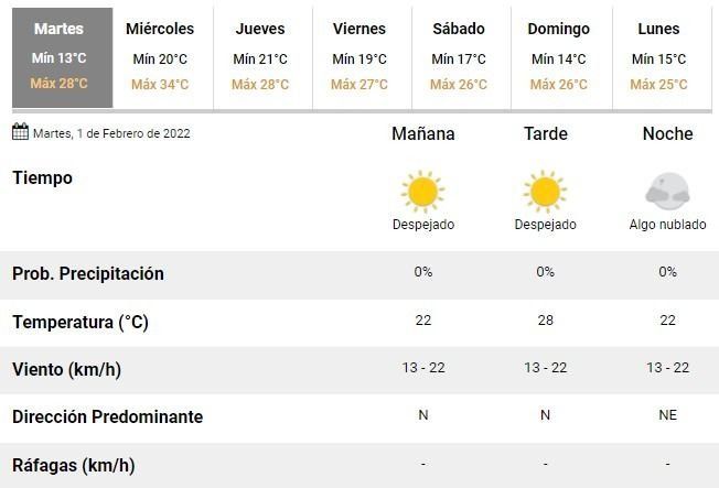 En el Servicio Meteorológico Nacional (SMN) pronosticaron un martes fresco a templado, con temperaturas de entre 13 y 28°C, con un cielo sin nubes y vientos leves soplando desde el norte y noreste.