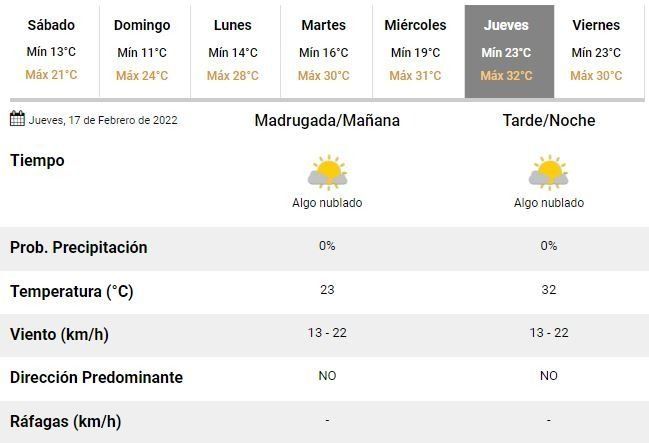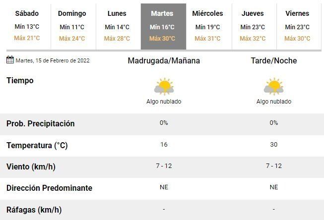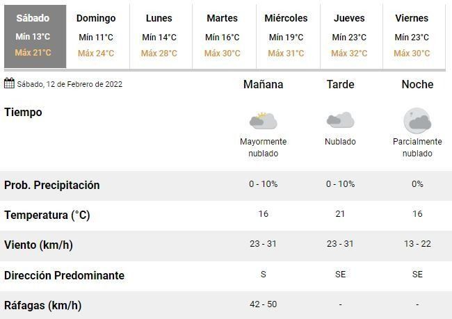 De acuerdo con los especialistas del Servicio Meteorológico Nacional (SMN) la jornada transcurrirá inestable, con el cielo completamente cubierto de nubes y con más viento, que en horas de la mañana podría alcanzar ráfagas de hasta 50 km/h. A partir del mediodía se espera que la intensidad del viento disminuya y el tiempo comience a mejorar paulatinamente.