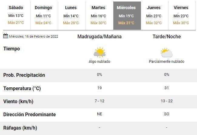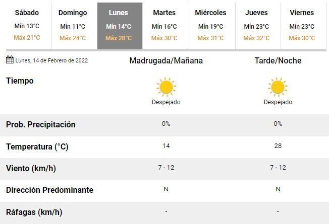Para el domingo, en tanto, se prevé un día con excelentes condiciones climáticas, un cielo completamente despejado y mucho sol, pero aun así con bajas temperaturas de entre 11 y 24°C.