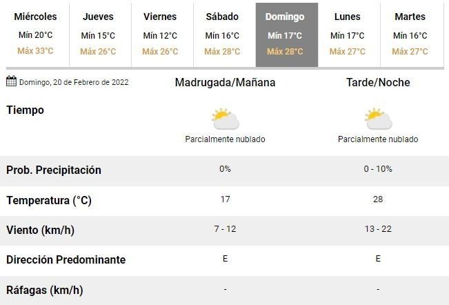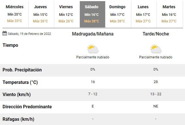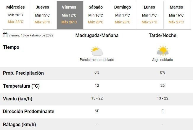 Para el fin de semana, por su parte, ya se prevé un leve ascenso de la temperatura, con mínimas de entre 16 y 17°C y máximas rondando los 28°C.