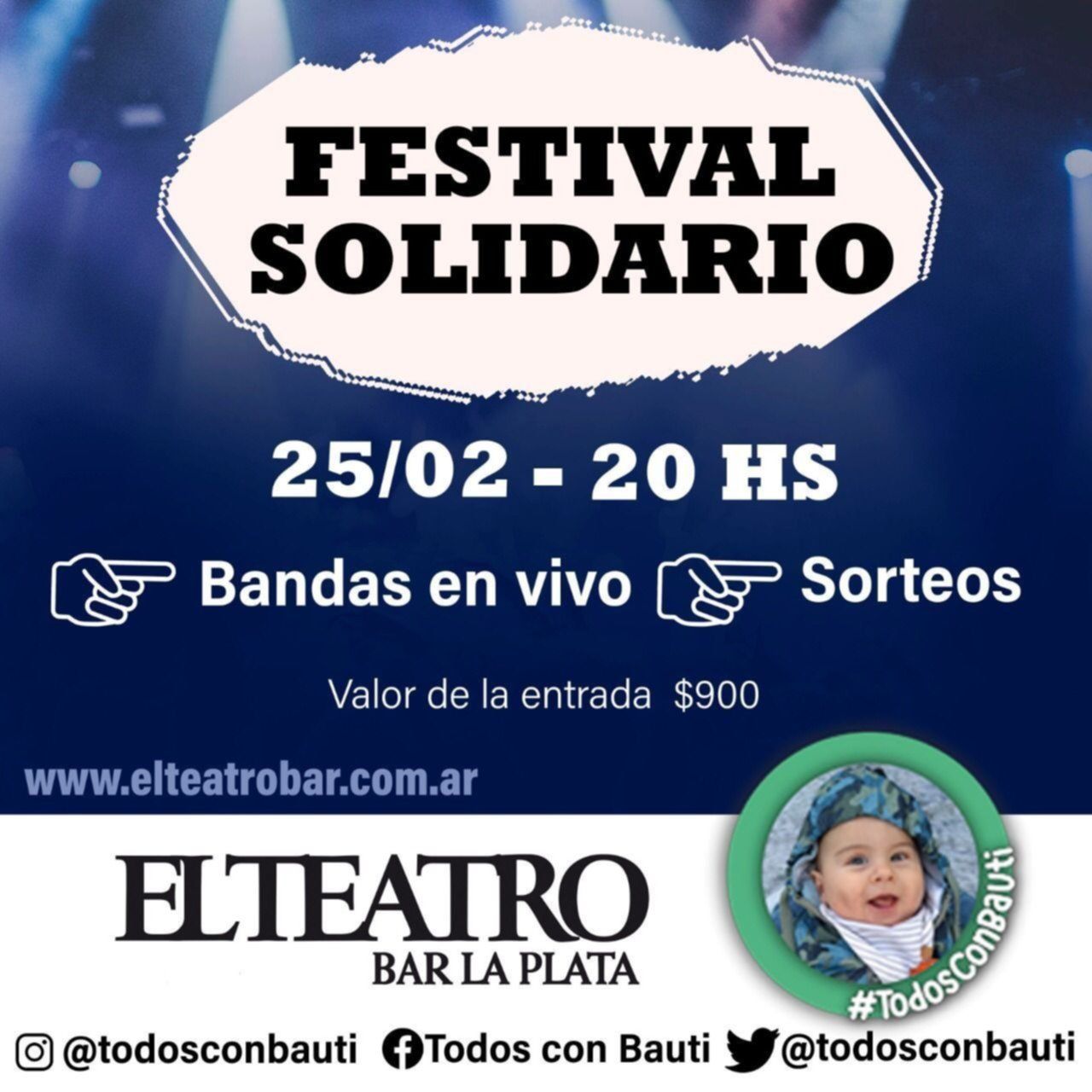 La campaña solidaria que se viralizó en las redes sociales como "Todos con Bauti" será en víspera de su primer cumpleaños y ahora sumará una nueva propuesta. "Vamos a darle una mano desde el Teatro Bar para recaudar lo mayor posible y arrimarlos a salvarlo", contaron los responsables del espacio en el que habitualmente se hacen espectáculos musicales. El evento se llevará a cabo el viernes 25 de febrero desde las 20 en 43 entre 7 y 8, la entrada costará $900 y habrá bandas en vivo y sorteos.