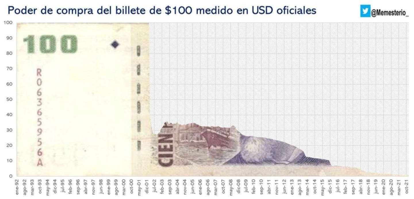 Aunque en 1992 era el de mayor denominación, actualmente el de $100 es el cuarto, detrás de los de $200, $500 y $1.000. Y con la salida de la convertibilidad, los $100 quedaron muy lejos de los US$100 que representaban entonces y hoy, al tipo de cambio oficial, ni siquiera alcanzan para comprar uno.