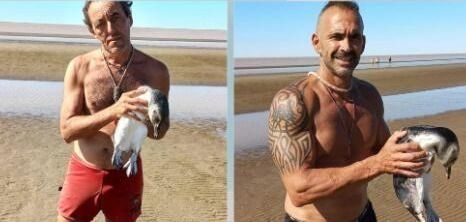 El pingüino fue avistado a pocos metros del puesto de vigilancia en el que estaban los guardavidas Ismael Borean y Cesar Pagano, quienes intervinieron rápidamente hidratando al animal, curando sus heridas y contactando al personal de Defensa Civil.