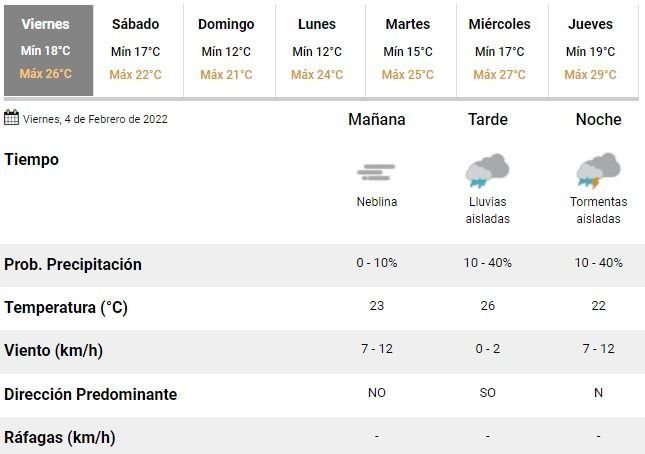 Los profesionales del Servicio Meteorológico Nacional (SMN) adelantaron además que las chances de lluvias y tormentas irán en aumento a lo largo de la jornada y no descartan algunos fuertes chaparrones durante las últimas horas del día.