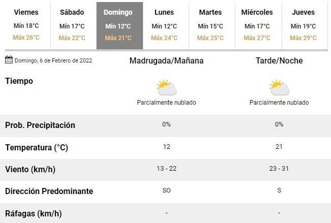 Finalmente, para el último de los días de descanso se prevé una mínima de apenas 12°C y una máxima en torno a los 21°C, en el marco de una jornada ya sin lluvias pero inestable y con un cielo casi completamente cubierto.