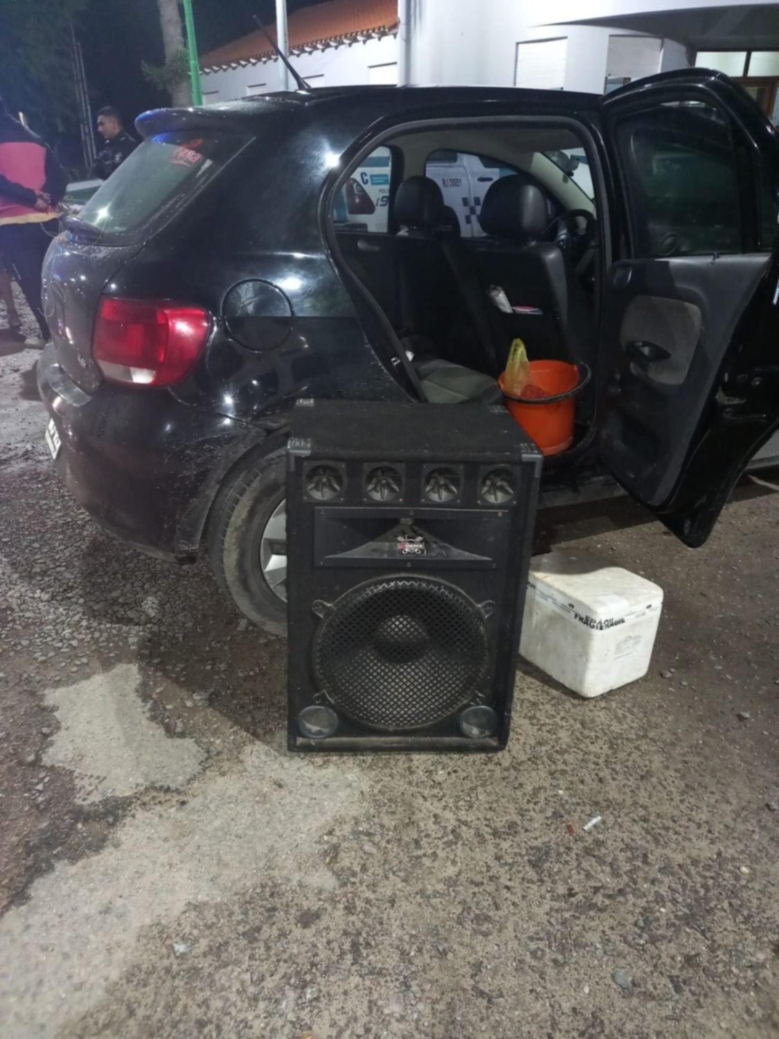 De acuerdo a los voceros, mediante este artilugio se apoderaron de una caja de parlantes de 12 pulgadas que había en el lugar y la cargaron en el Volkswagen Gol Trend en el que habían arribado. La secuencia duró apenas unos pocos minutos, pero fue suficiente para sembrar el terror.