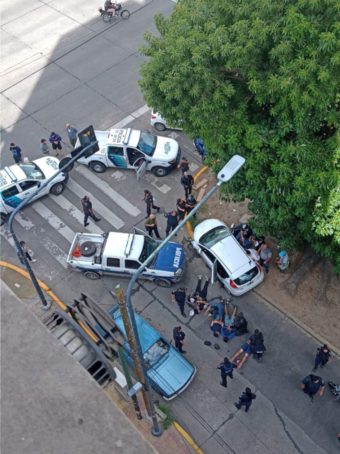 De acuerdo a los voceros, todo comenzó en 522 entre 5 y 6, cuando a punta de pistola le robaron el auto a un vecino. Luego, huyeron a toda velocidad y atacaron en una farmacia ubicada en la esquina de 19 y 56. Allí, le dieron un culatazo en la cabeza a una mujer y escaparon con la recaudación.