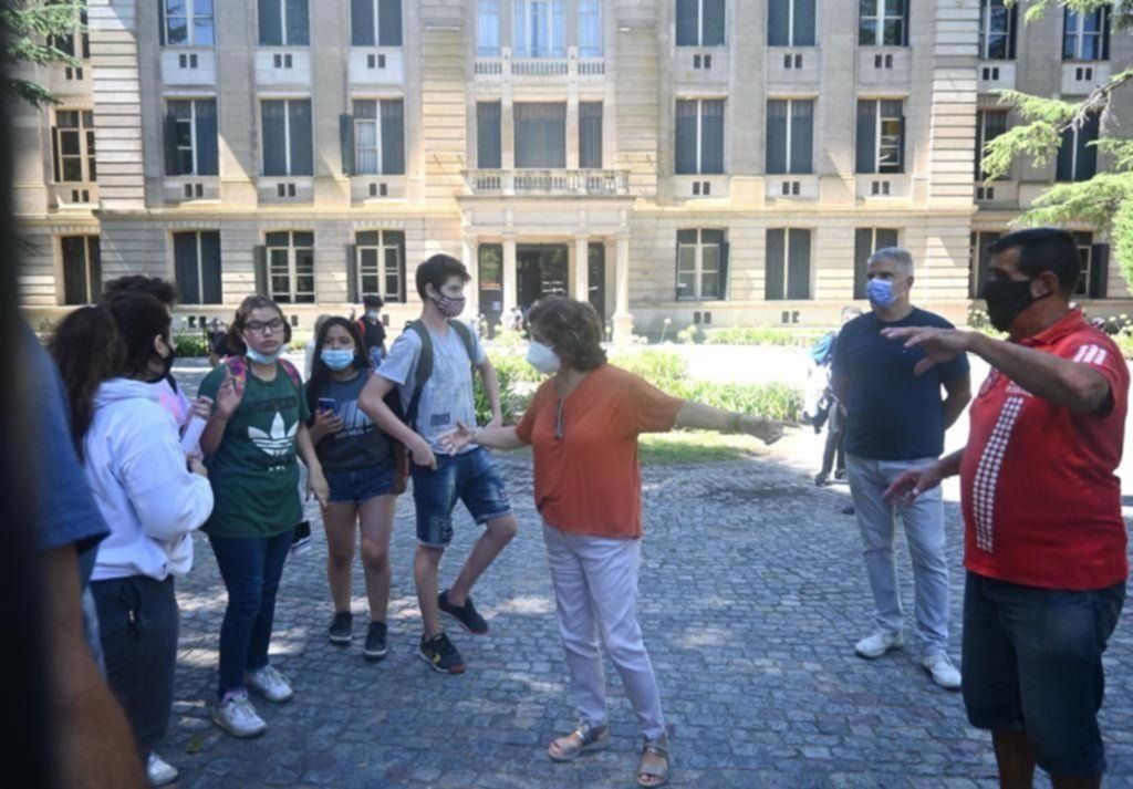 Según el relato de la directora, alrededor de seis personas irrumpieron saltando las rejas que dan a la parte posterior del Colegio, en la zona del Bosque. Ese fue el instante de mayor tensión debido a la presencia de los alumnos. "Fue un episodio que arrancó afuera del Colegio", aclaró Munitis. Y explicó que "rápidamente" la Guardia Edilicia de la UNLP primero y la policía después, "lograron controlar la situación". Sin embargo las personas buscaron refugiarse en la zona de la galería de la planta baja, donde se encuentra parte de la dependencia directiva y administrativa.