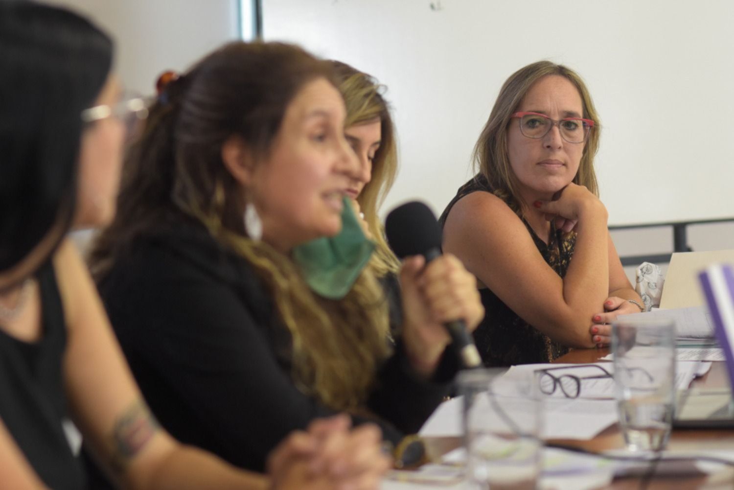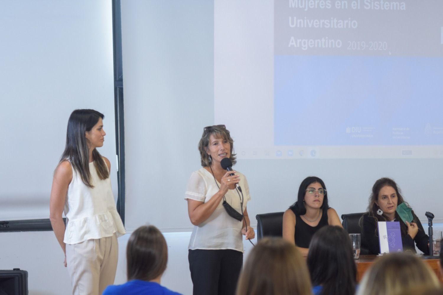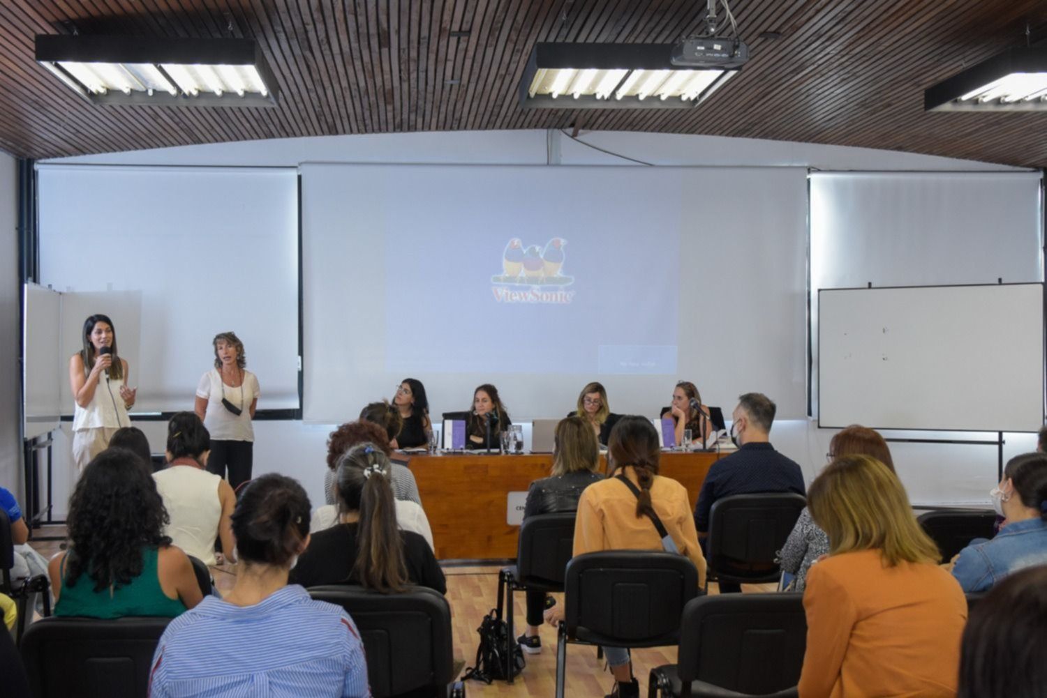 La apertura de la jornada estuvo a cargo de la prosecretaria de Derechos Humanos de la UNLP, Verónica Cruz, y de la prosecretaria de Medios y Publicaciones, Josefina Bolis.