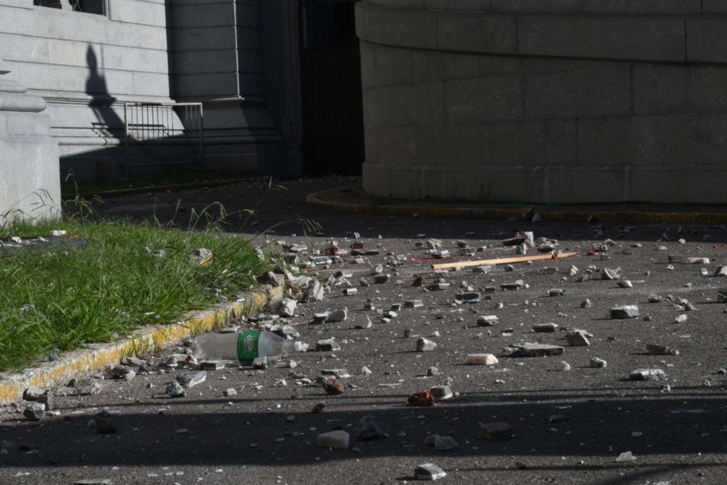 Tal como se vio en las imágenes que recorrieron los distintos medios de comunicación, los agresores que rompieron parte del pavimento para lanzar proyectiles, también arrojaron bombas de pintura, y quemaron gomas en las puertas del Congreso. Uno de ellos, incluso hizo estallar una bomba molotov ocasionando quemaduras en uno de los efectivos policiales.
