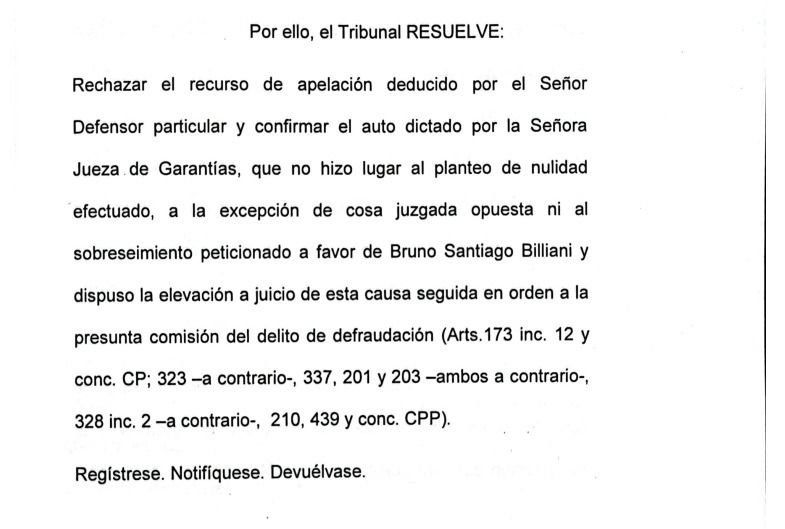 La causa había sido elevada a juicio. La defensa apeló pero los camaristas Laura Lasaga y Sergio Almeida no hicieron lugar a los planteos de esa parte. Tras analizar el expediente la cámara de Alzada rechazó la apelación, confirmó la elevación a juicio del expediente, no hizo lugar al pedido de nulidad, a la excepción de “cosa juzgada” ni al “sobreseimiento”, confirmaron fuentes judiciales a 0221.com.ar.