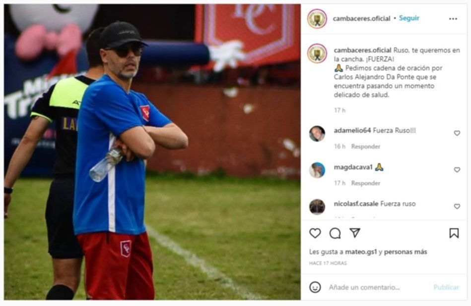 "Ruso, te queremos en la cancha. ¡FUERZA! Pedimos cadena de oración por Carlos Alejandro Da Ponte que se encuentra pasando un momento delicado de salud", habían escrito este lunes en el club, provocando el aliento de todos los fanáticos.