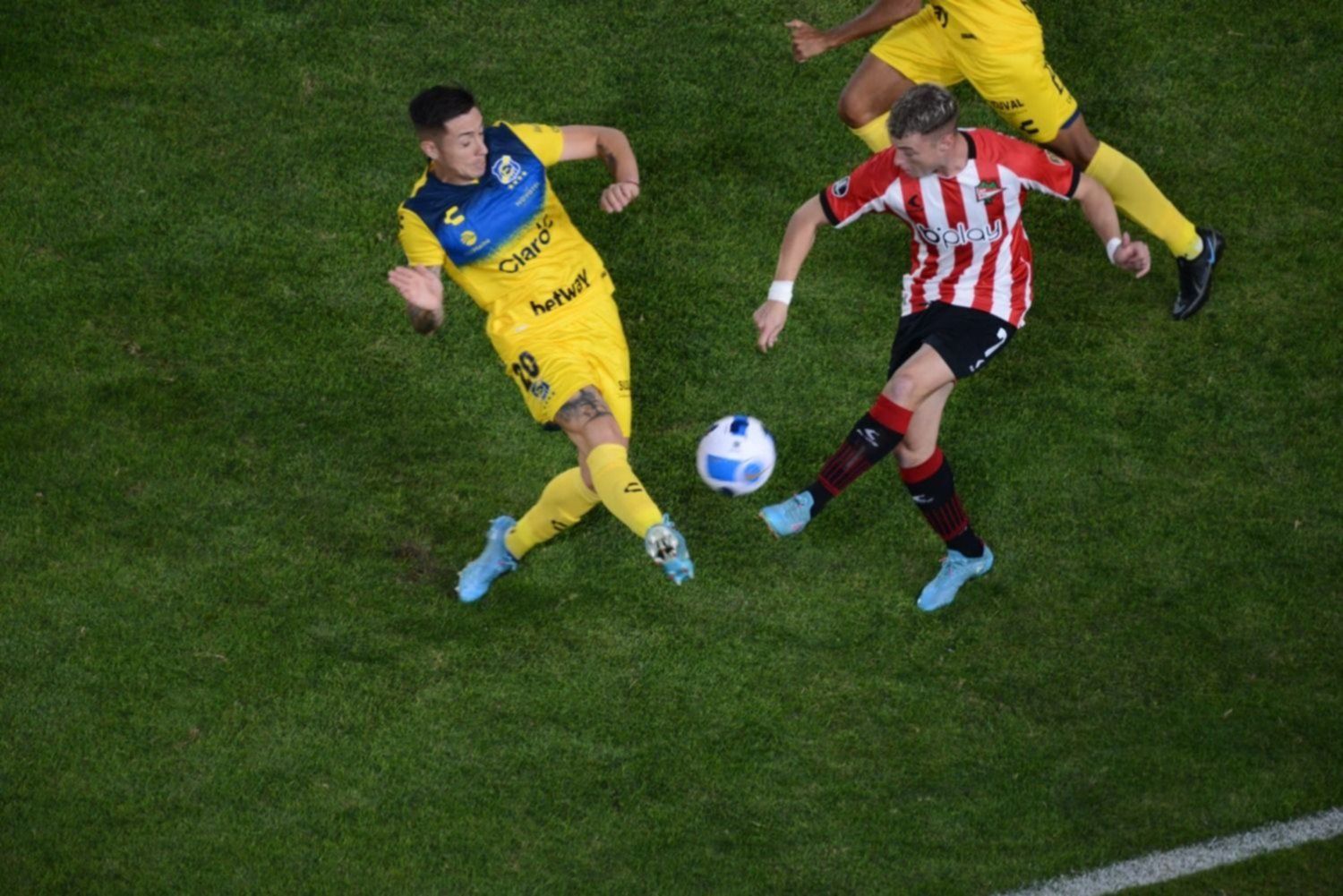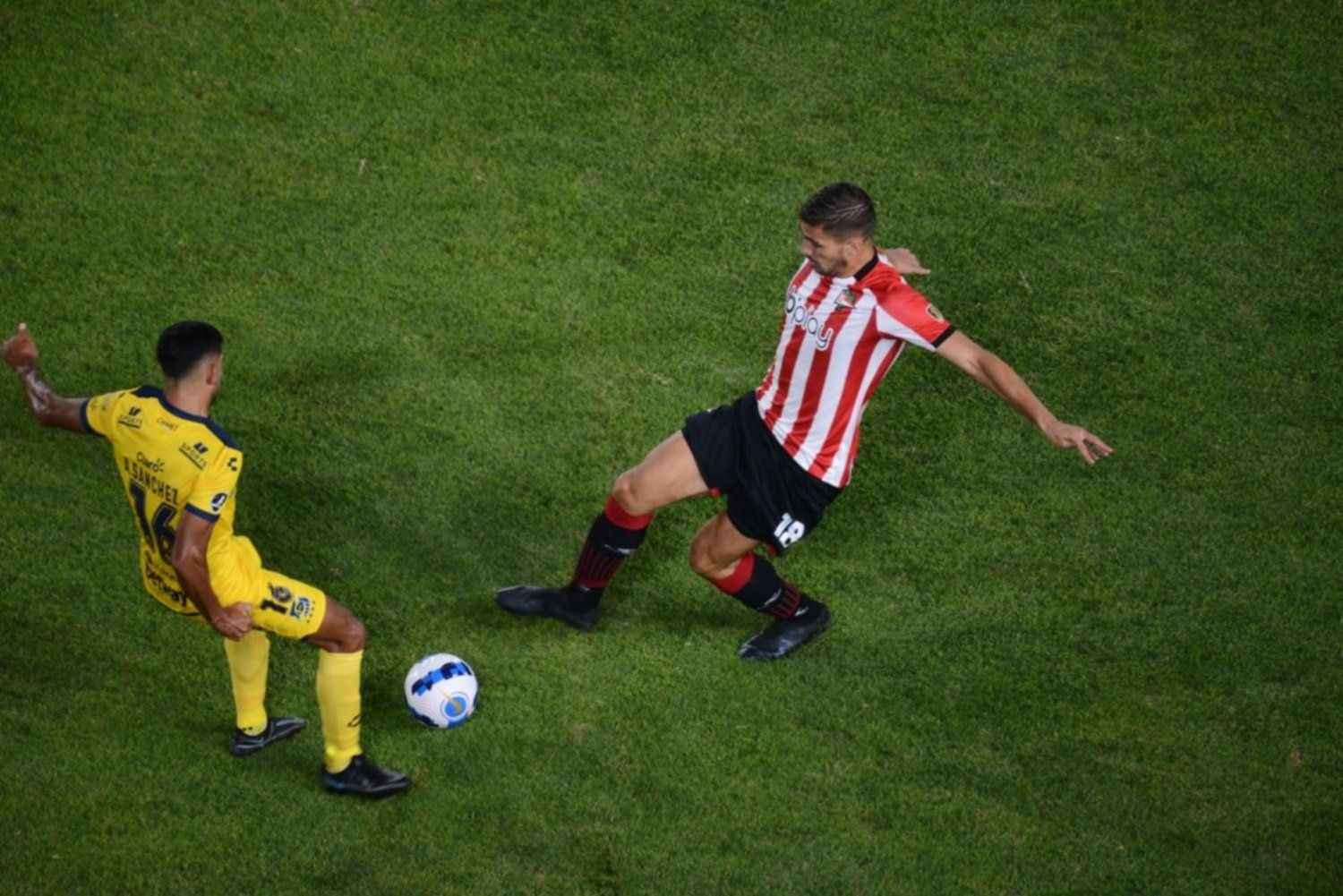 Hasta que a los 33 minutos, en una mala salida de la defensa chilena, presionó Estudiantes en la mitad de la cancha, el zaguero central uruguayo Agustín Rogel, subido en ataque.aprovechó un rebote y encaró como un delantero. Al entrar al área sacó un tremendo derechazo cruzado para vencer a De Paul y darle tranquilidad al conjunto de Ricardo Zielinski.