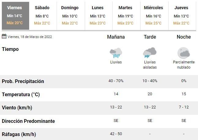 Los expertos prevén un fin de semana con buenas condiciones de clima, con nubosidad variable y hasta algo de sol, ya sin probabilidades de lluvias y con máximas templadas rondando los 22°C.
