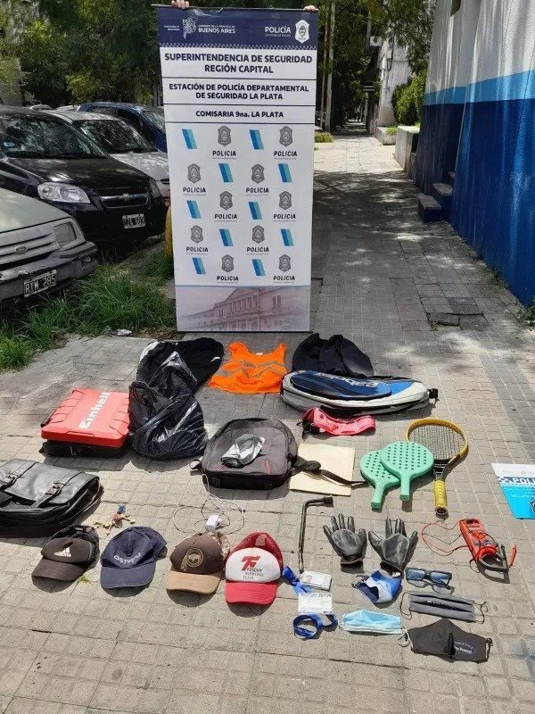 Tras revisar el auto en el que ciirculaba, un Chevrolet Prisma, la policía halló un par de guantes color negro, un chaleco refractario de la Policía, gorras de distintos modelos, 200 mil pesos en billetes de 1.000, una caja de herramientas, credenciales apócrifas y una barreta de hierro.