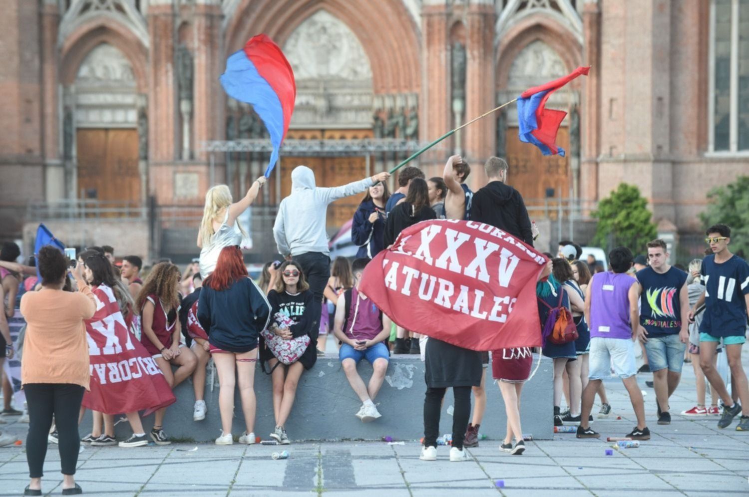 Algunos cursos acompañados por padres, otros sin muchos cuidados y a la deriva, decidieron desatar su festejo de manera enérgica, frente a la atenta mirada de efectivos de Control Urbano que seguían sus pasos y velaban por el orden general de la situación.