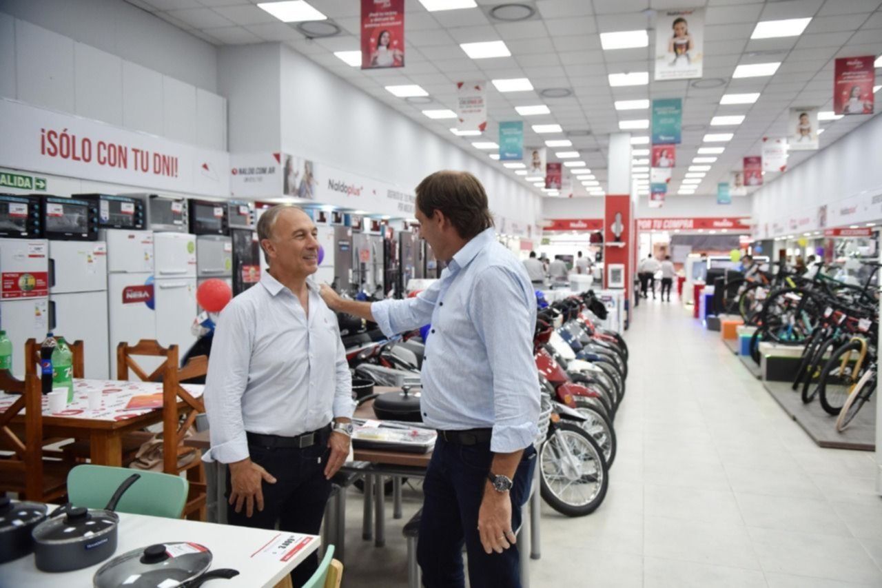 El intendente Julio Garro visitó la nueva sucursal de la cadena de electrodomésticos Naldo, allí dialogó con su propietarios sobre las características de la inversión y los puestos de trabajo que se crearon para los platenses.