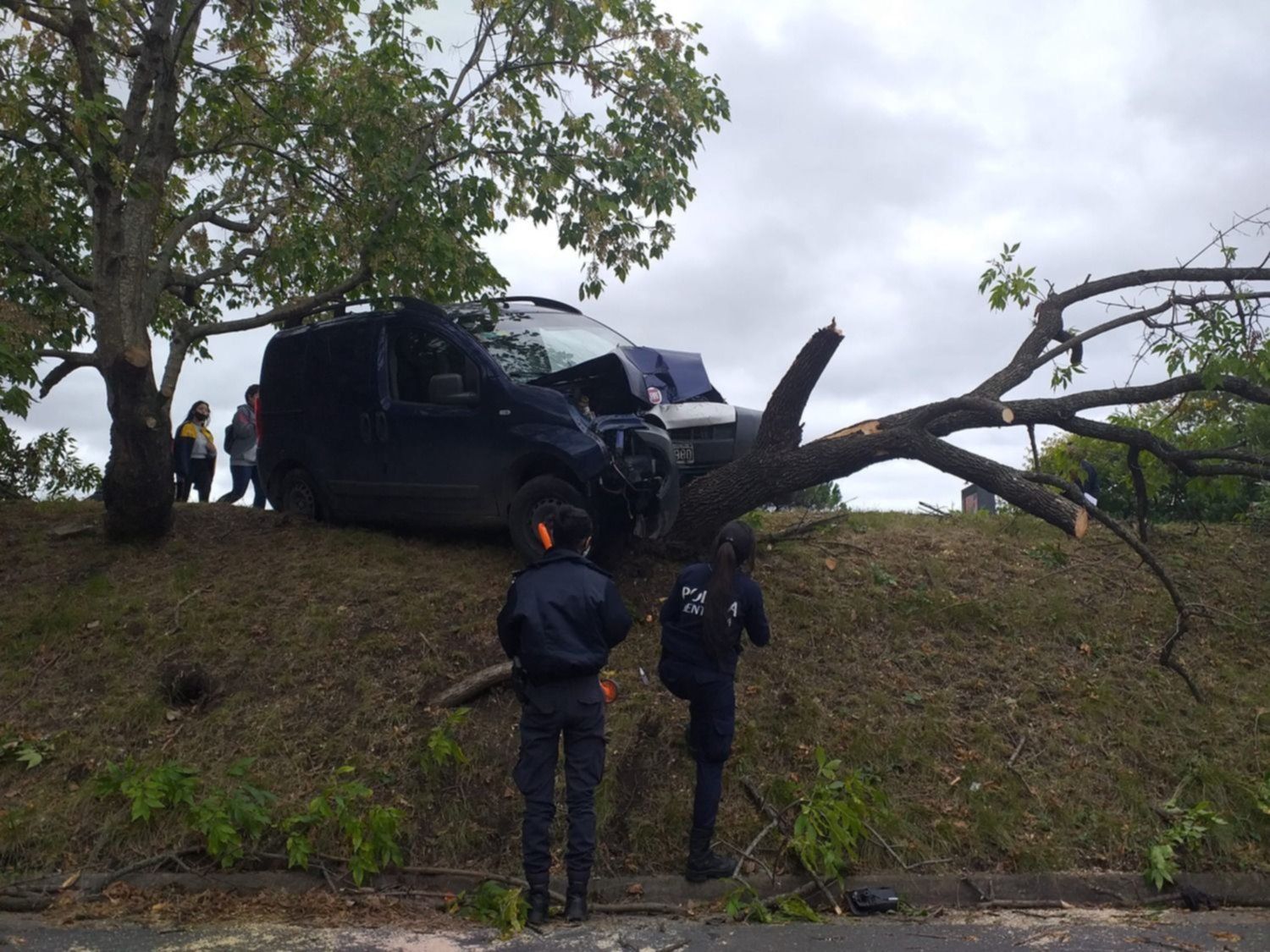 El vehículo es un utilitario que circulaba por la Circunvalación (131), en un lugar donde la avenida rápida dibuja una curva. Habría sido allí donde el hombre, de unos 42 años, habría perdido el control, se salió de la calzada, subió a la vereda e impactó contra un árbol al que le cortó un gajo.