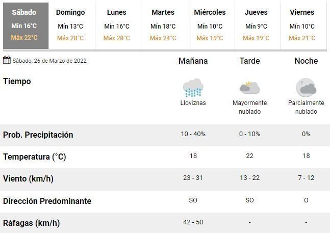 El fin de semana comenzó con mucha inestabilidad. Los meteorólogos esperan que puedan registrarse algunas lloviznas aisladas durante las primeras horas del día y advierten que, al menos hasta el mediodía, podrían registrarse algunas ráfagas de viento de hasta 50 km/h.