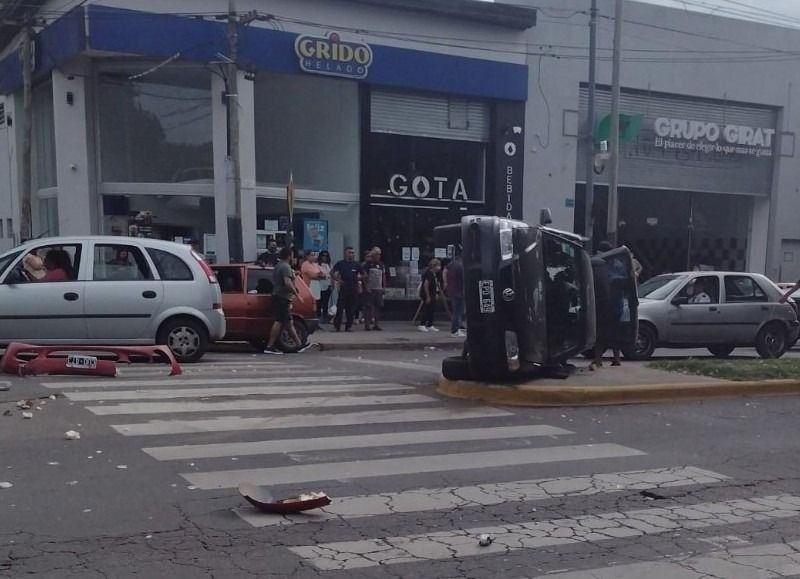 El violento choque ocurrió justo en la esquina donde se encuentra ubicada la comisaría Octava, cuando VW GOL gris que era conducido por hombre que estaba en compañía de dos menores, chocó con un Ford Escort Rojo y terminó volcado arriba de la rambla.